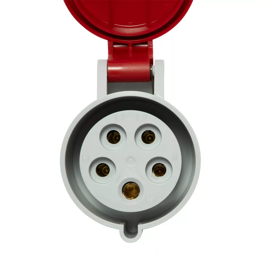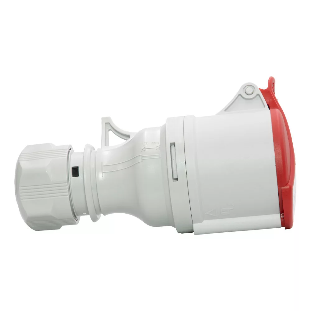 • A CEE 32A csatlakozóaljzat csuklós fedéllel ideális kereskedelmi alkalmazásokban vagy építkezéseken való használatra