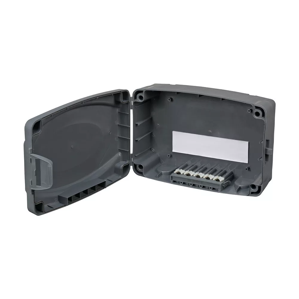 A kültéri tápdoboz a szigetelésnek köszönhetően magas szintű védelmet nyújt a por és a nedvesség ellen, és több kábelbe- és -kivezetéssel rendelkezik