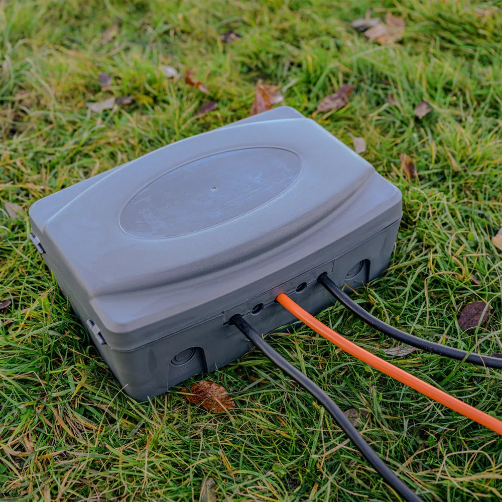 Az időjárásvédő doboz ideális a kerti elektromos munkákhoz, valamint a kerti világítás és a díszkivilágítás, a szivattyúk/UV-szűrők, a tóvilágítás stb. Csatlakoztatásához