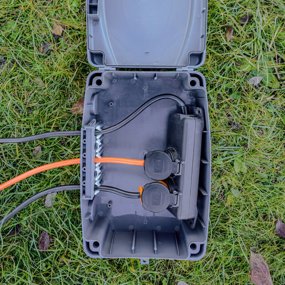Az IP54 védettségi osztálynak köszönhetően az időjárásálló doboz biztosítja az olyan elektronikus eszközök biztonságos csatlakoztatását, mint a karácsonyi világítás, a kerti díszkivilágítás, a szivattyúk/UV-szűrők, valamint a tavi létesítmények világítása, és alkalmas minden kültéri kábelcsatlakozásra