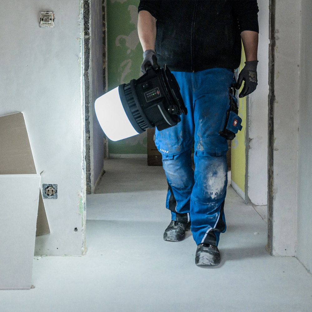 A Brennenstuhl fényes Multi Battery LED 360° Hybrid építési reflektora ideális igényes és robusztus beltéri és kültéri használatra. Az IP54-es védettségi besorolásnak köszönhetően a körkörös megvilágítású munkalámpa optimálisan védett a por és a fröccsenő víz ellen. A Multi Battery 18V rendszernek köszönhetően lehetőség van a választott akkumulátor-rendszer használatára - a nagy teljesítménytartományban. A nagy teljesítményű munkalámpa még nagyobb hatékonyságot biztosít a Bosch Professional, Dewalt, Einhell, Fein, Festool, Flex, Hikoki, Makita, Metabo CAS, Milwaukee és Würth elektromos szerszámgyártók tizenegy 18 V-os akkumulátorrendszerével való kompatibilitásának köszönhetően. Függetlenül attól, hogy a szakember melyik akkumulátorrendszert választotta, a Brennenstuhl Multi Battery 18V System teljes kompatibilitást tesz lehetővé a vezető akkumulátortechnológiákkal. A Brennenstuhl az AMPShare - Powered by Bosch Professional tagja. Az AMPShare akkumulátor szövetség lehetővé teszi a Brennenstuhl munkalámpák használatát a Bosch Professional 18V-os akkumulátorokkal. A 360 fokos építési reflektor innovatív interfész-technológiával a következő tulajdonságokkal is lenyűgöz: