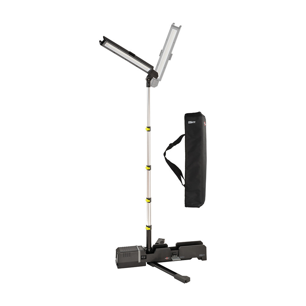 A kihúzható teleszkóppal ellátott munkaspotlámpa kompakt kialakításának köszönhetően teljesen összecsukható, és a szállítótáska segítségével könnyen szállítható