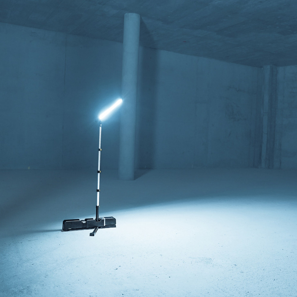 Az IP54-es védettségnek köszönhetően a dönthető fényszórófejjel ellátott, állítható magasságú munkalámpa optimálisan védett a por és a fröccsenő víz ellen