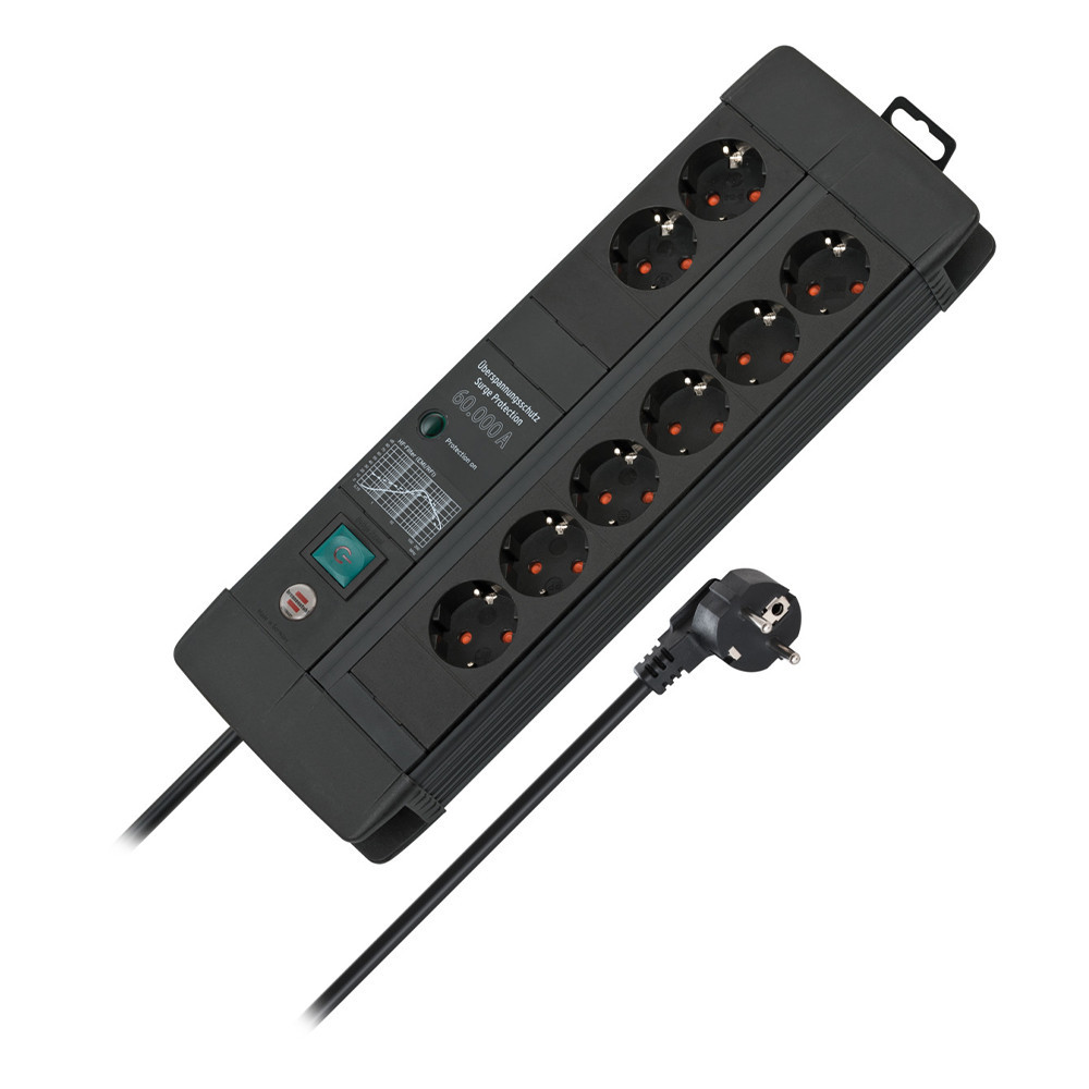 Brennenstuhl Premium-Line 60.000A túlfeszültség elleni védelem 8-utas Duo fekete 3m H05VV-F 3G1,5
