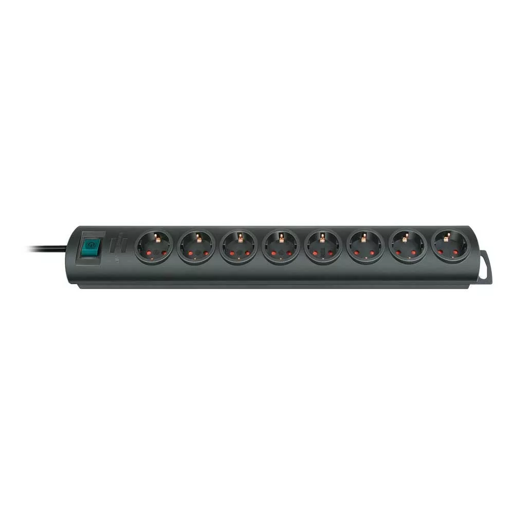 A Brennenstuhl Primera-Line 8-as többszörös konnektor szalagja fekete színben és 2 m-es kábellel minden téren lenyűgöz minőségével és biztonságával. Nemcsak a véletlen érintés elleni fokozott védelemmel rendelkezik, hanem a következő tulajdonságokkal is meggyőző: