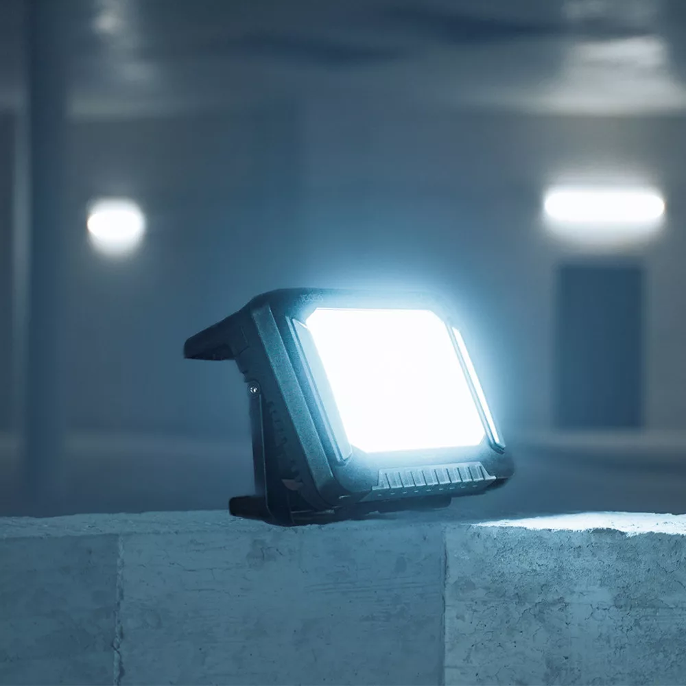 Munkahelyi reflektor, beleértve az interfész adaptereket 5 gyártóhoz (Bosch Professional, Dewalt, Makita, Metabo CAS, Milwaukee).