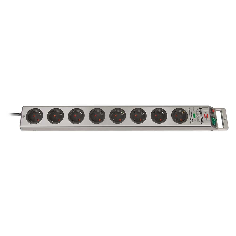 A Brennenstuhl Super-Solid 8er többszörös aljzatkapcsoló szalagja ezüst színben és 2,5 m-es kábellel minden téren lenyűgöz minőségével és biztonságával. A kapcsolóval szemben található speciális kábelbevezetésnek köszönhetően ennek a konnektornak a működtetése különösen egyszerű, például az íróasztal alatt. Nemcsak a véletlen érintés elleni fokozott védelemmel rendelkezik, hanem a következő tulajdonságokkal is meggyőző:
