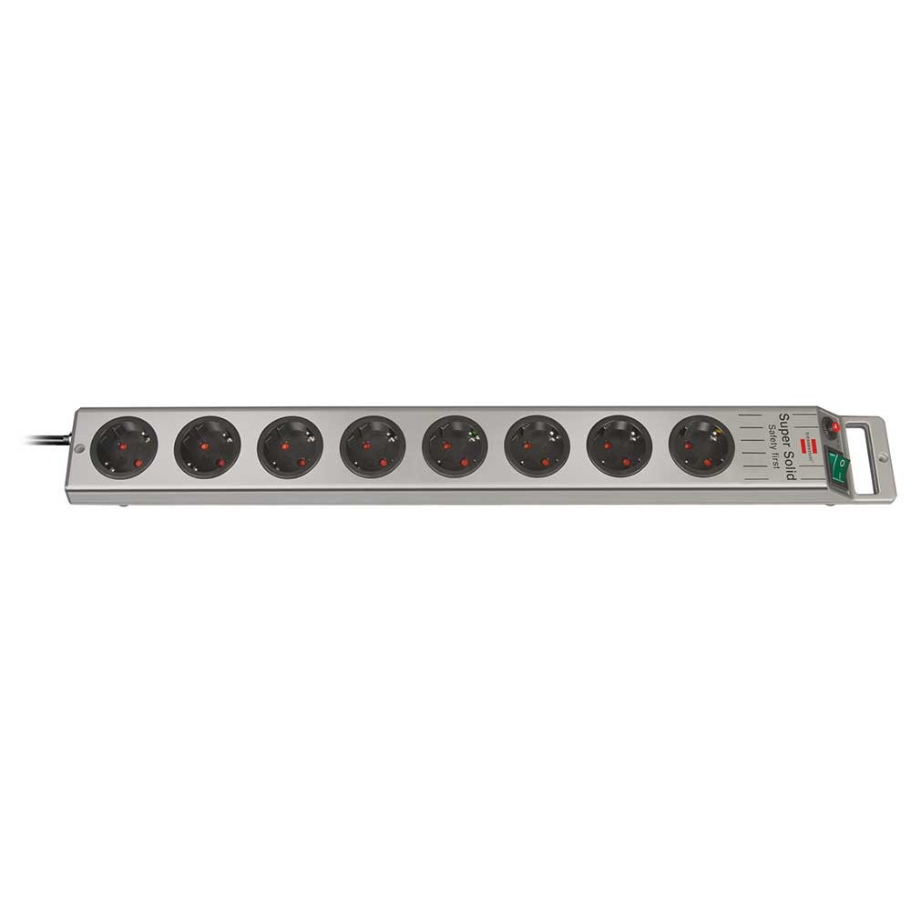 A Brennenstuhl Super-Solid 8er többszörös aljzatszalagja fekete/ezüst színben és 2,5 m-es kábellel minden téren lenyűgöz minőségével és biztonságával. A kapcsolóval szembeni speciális kábelbevezetésnek köszönhetően ez a hálózati csatlakozó különösen megkönnyíti az üzemeltetést, például az íróasztal alatt. Nemcsak a véletlen érintés elleni fokozott védelemmel rendelkezik, hanem a következő tulajdonságokkal is meggyőző: