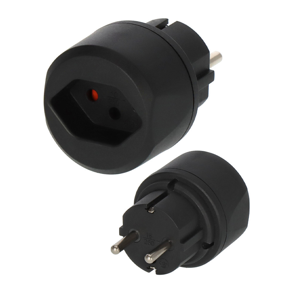 1 pólusú földelt utazó dugó elektromos készülékek csatlakoztatásához svájci dugaljrendszerrel, ... és földelő érintkezővel ellátott aljzatokhoz