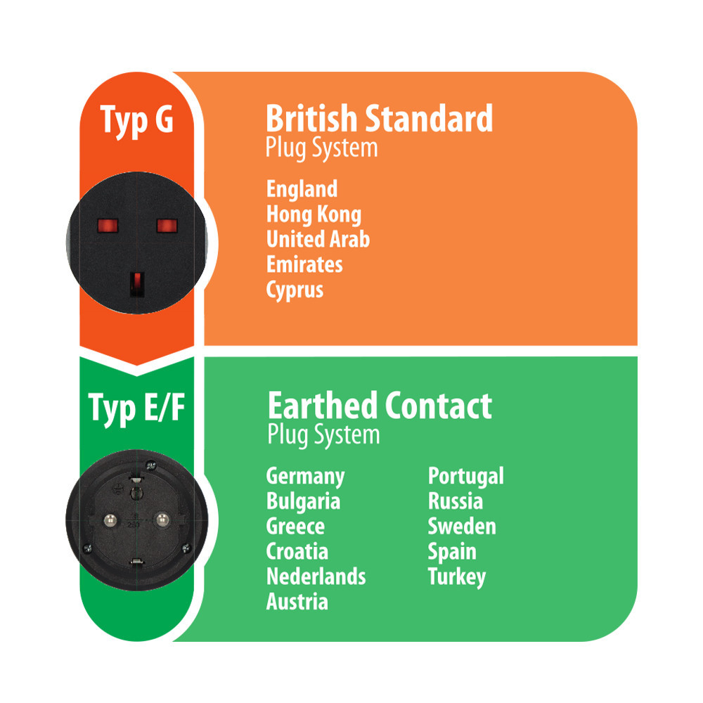 • A következő országok dugaszaihoz alkalmas: Anglia, Hongkong, Ciprus, Egyesült Arab Emírségek,