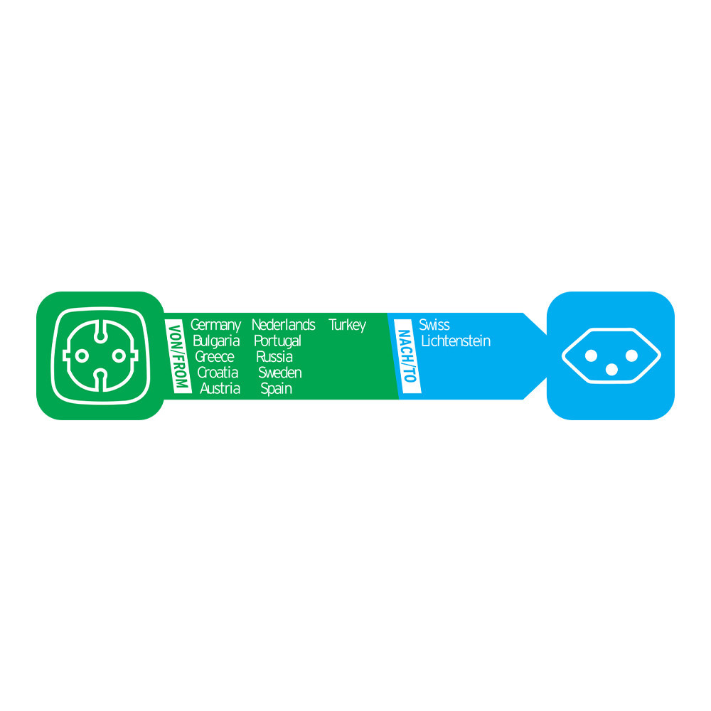 • 1 pólusú földelt utazó dugó az EU dugaljrendszerrel rendelkező elektromos készülékek csatlakoztatásához és CH dugaljrendszerrel rendelkező konnektorokhoz - földelő érintkezővel