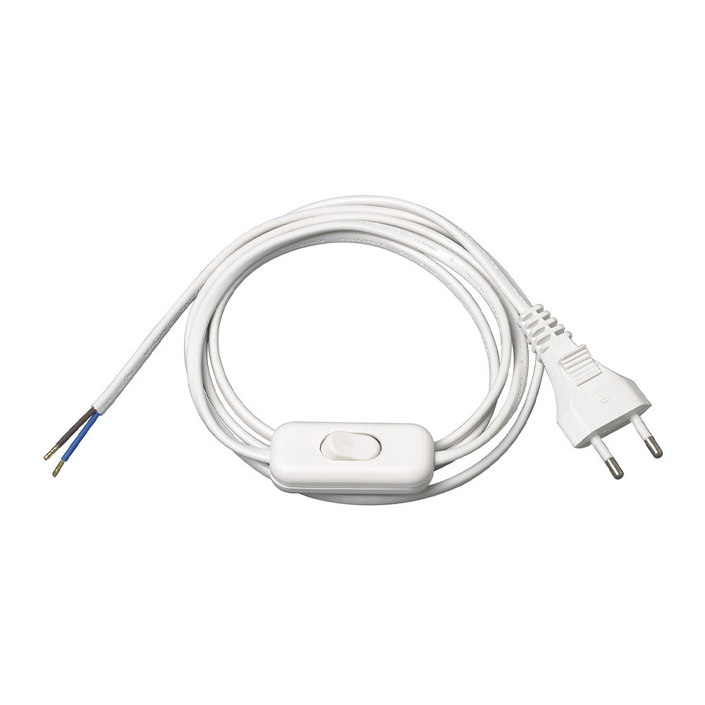 1,5 m-es csatlakozókábel (H03VV H2-F 2x0,75) lapos kábellel max. 2,5A teljesítményű készülékek csatlakoztatásához.