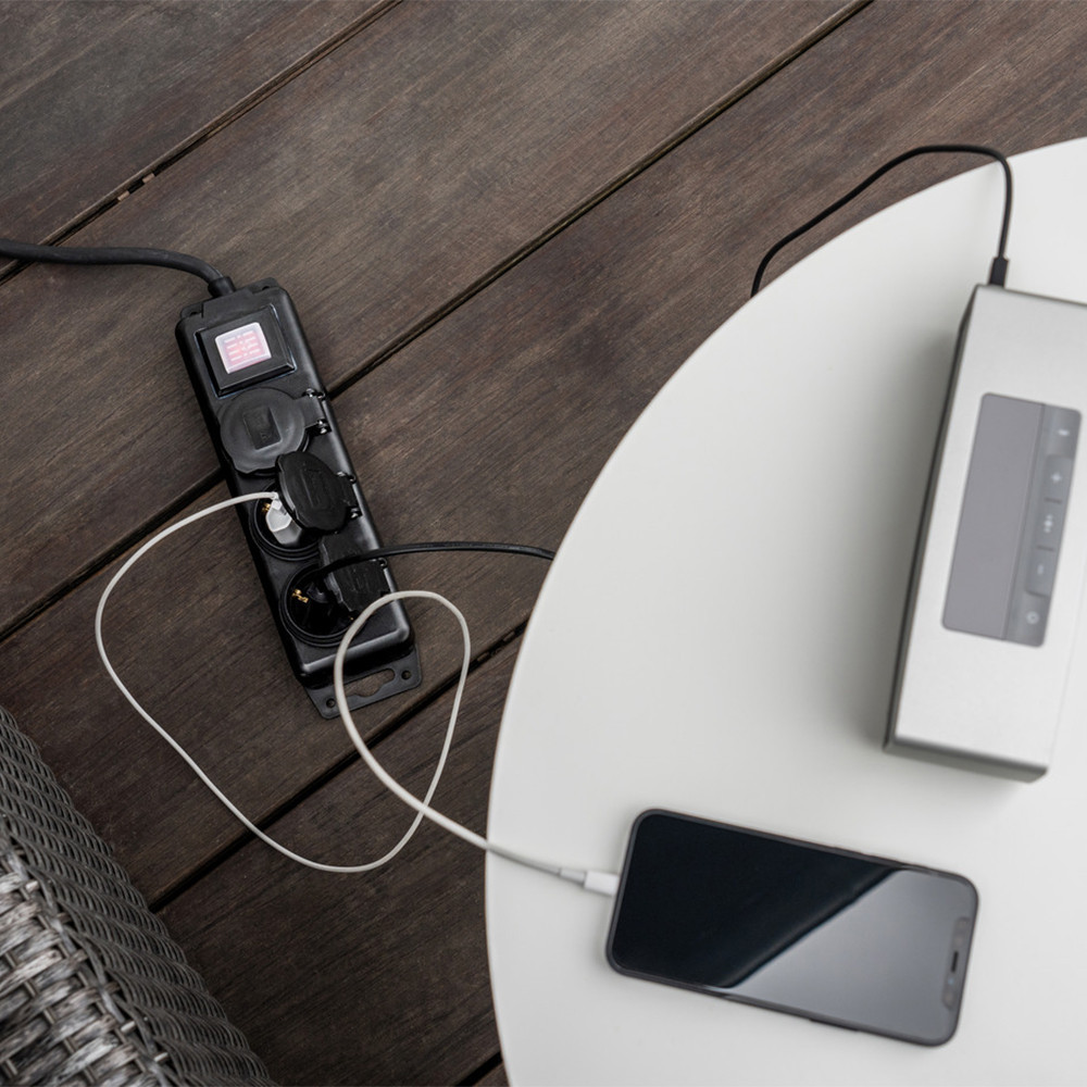 1 db Brennenstuhl elosztó, 3 dugalj, kapcsolóval, fekete, 2m, IP44