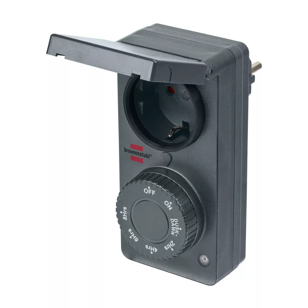 Ezenkívül a szürkületi funkcióval ellátott időzítő fröccsenésbiztos aljzattal rendelkezik, amely fokozottan véd a véletlen érintkezés ellen, ezért ideális kültéri használatra