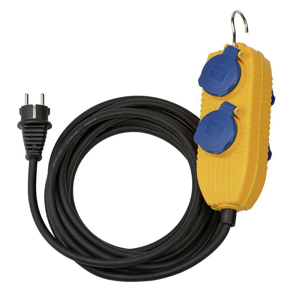 A Brennenstuhl 5 méteres építkezési kábel IP54-es védettségének (por- és fröccsenésálló) köszönhetően az IP54-es védettségi besorolásnak köszönhetően (por- és fröccsenésálló) tökéletesen alkalmas kültéri használatra, legyen szó építkezésről, ház körüli munkákról vagy ipari és kereskedelmi területekről. A kültéri 4 utas elosztóaljzat a következő tulajdonságokkal is lenyűgöző: