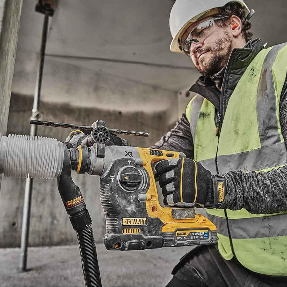 A 2,1 Joule ütési energiát biztosító és a betonban 24 mm átmérőjű lyukak fúrására alkalmas, szénkefe nélküli DCH273 fúrókalapács gyorsabban elvégzi a munkát, mint a korábbi modellek. Része a 'Perform & Protect' termékcsaládunknak. Elfordulásgátló vezérléssel és alacsony, 6,6 m/s2 rezgésszinttel rendelkezik, a hosszan tartó munkák elvégzéséhez.\nA POWERSTACK 5AH akkumulátorok 50%-kal nagyobb teljesítményt* biztosítanak, töltésenként 50%-kal több munkával** és kétszer hosszabb élettartammal*** a normál 5AH akkumulátorokhoz képest.\n\n* vs. DEWALT DCB184 akkumulátor, nem használható **Felhasználható energia a DEWALT DCB184 akkumulátorral szemben, nem használható ***Töltési ciklusok a DEWALT DCB184 akkumulátorral szemben.