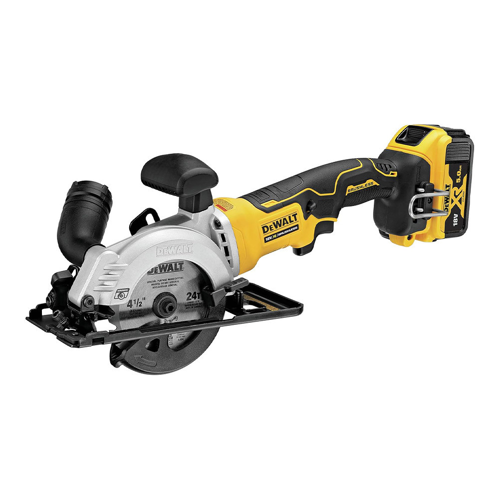 A DEWALT szénkefe nélküli motor és a 18 V-os XR akkumulátor maximum 38 mm-es, 45°-on pedig 25 mm-es vágási mélységet biztosít