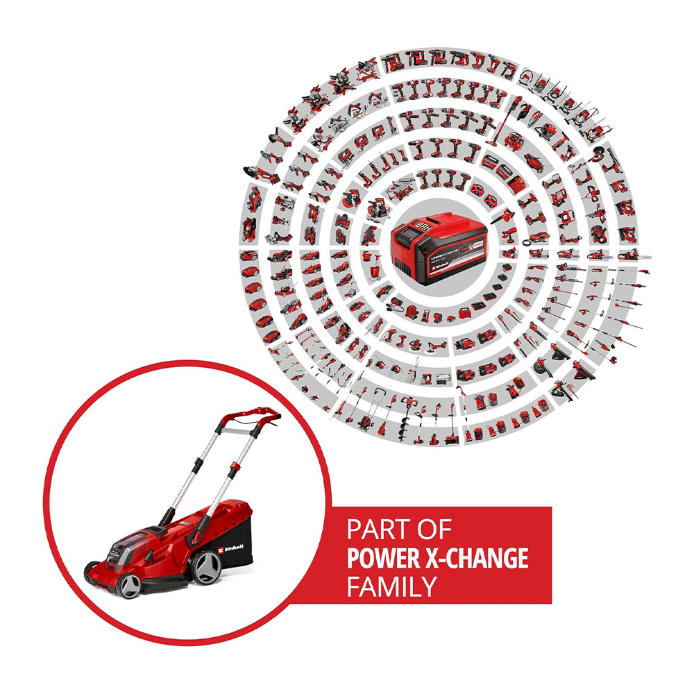 A nagy teljesítményű akkumulátoros fűnyíró a Power X-Change termékcsaládba tartozik, amelynek valamennyi tagja – beleértve az összes akkut, készüléket és töltőt – kombinálható egymással