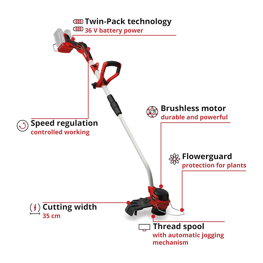 Az Einhell GP-CT 36/35 Li BL-Solo professzionális akkumulátoros fűszegélynyíró nem hiányozhat egyetlen hobbikertész eszköztárából sem