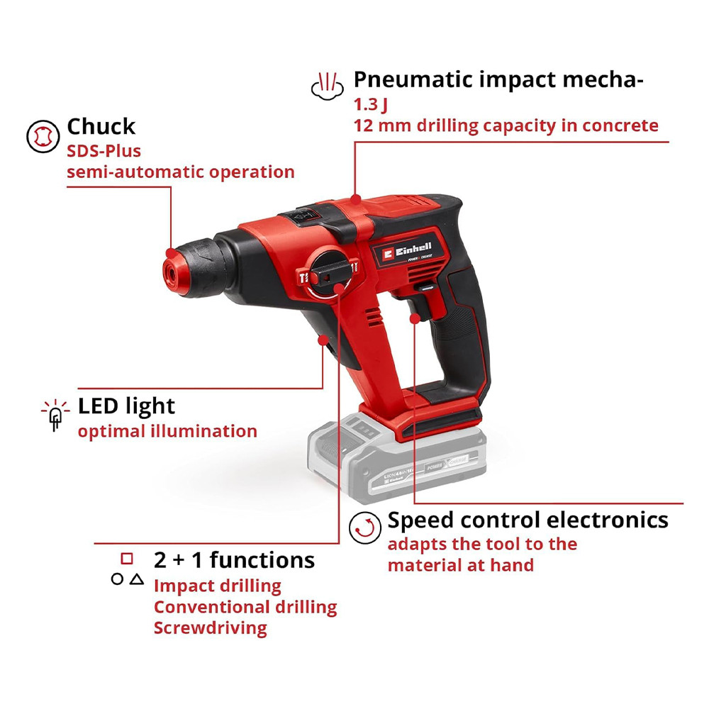 Einhell akkus SDS-Plus fúrókalapács TE-HD 18/12 Li - SOLO 18V alapgép