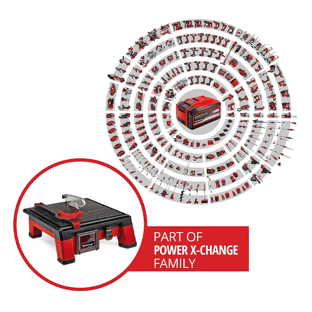 Az Einhell TE-TC 18/115 Li-Solo csempevágó gép, amelyet a nagy teljesítményű Power X-Change termékcsalád újratölthető akkumulátora működtet, „könnyűsúlyú” a csempevágók között, és rugalmasan használható bárhol és mindenhol – távol minden áramforrástól, például konnektortól vagy generátortól