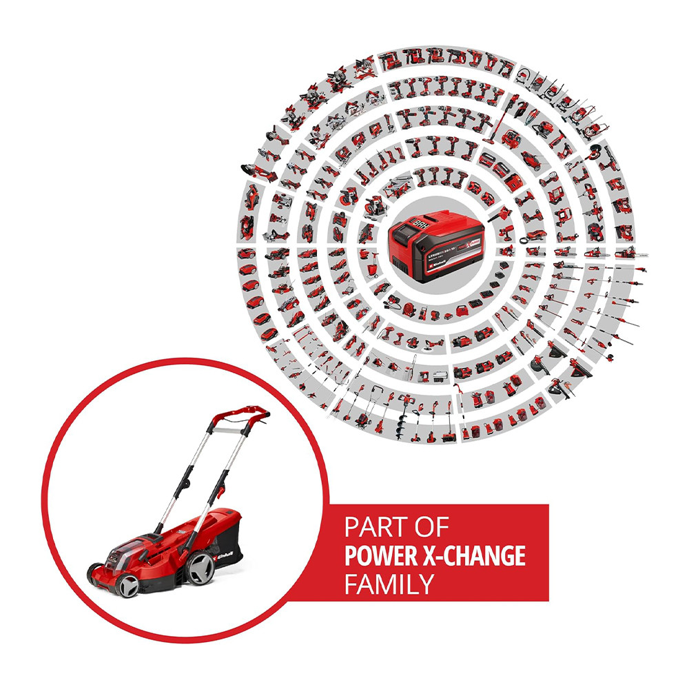 Az Einhell RASARRO 36/36 akkumulátoros fűnyíróval gyerekjáték a gyep ápolása. Mivel a kiváló minőségű Power X-Change akkumulátorok mindig nagy teljesítményt biztosítanak, örökre elfelejtheti a hosszabbítókábelekkel járó fejfájást!