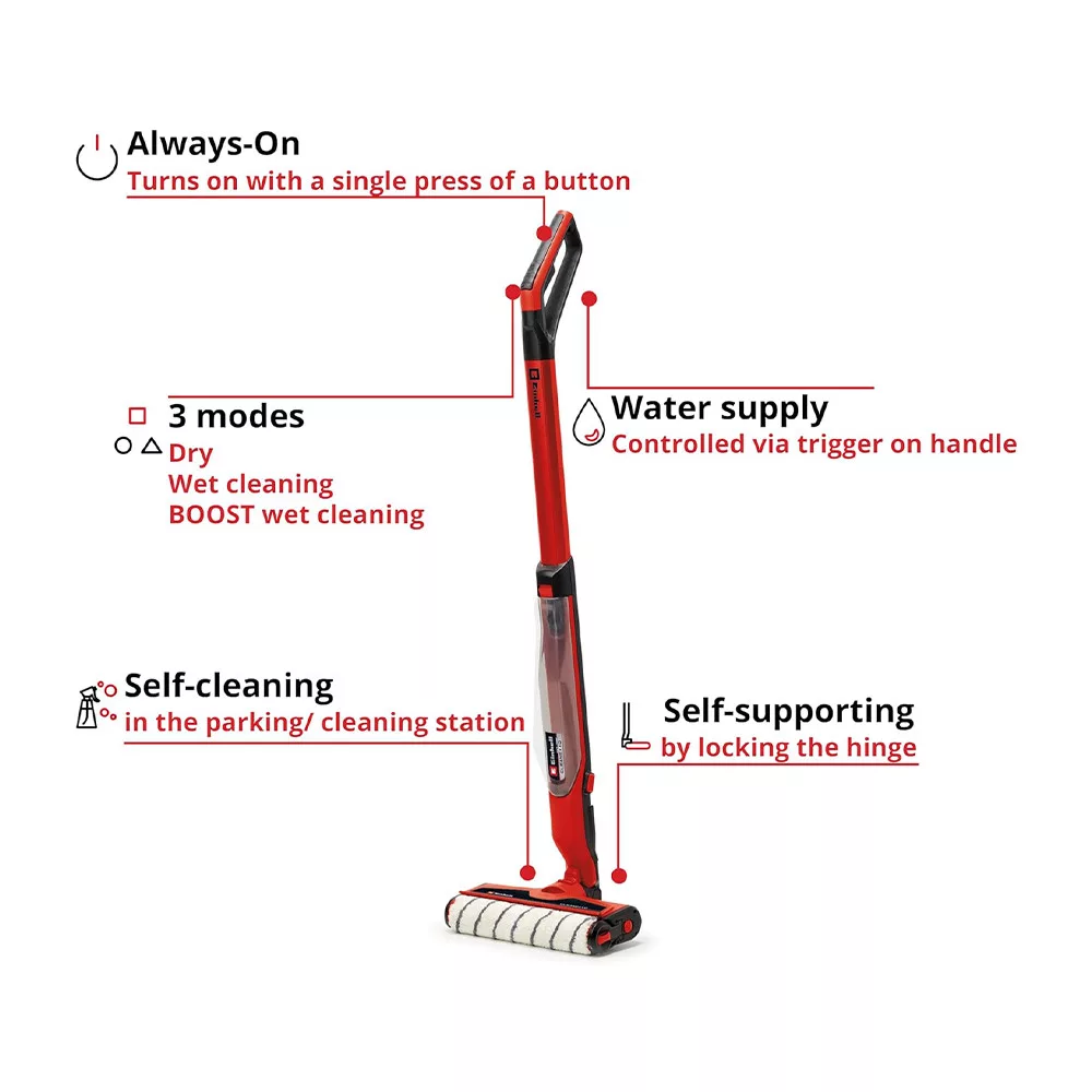 Az Einhell CLEANEXXO akkumulátoros padlótisztítót használva pillanatok alatt szebbé varázsolhatja otthonát, és örökre elfelejtheti a felmosókkal járó fáradságos munkát