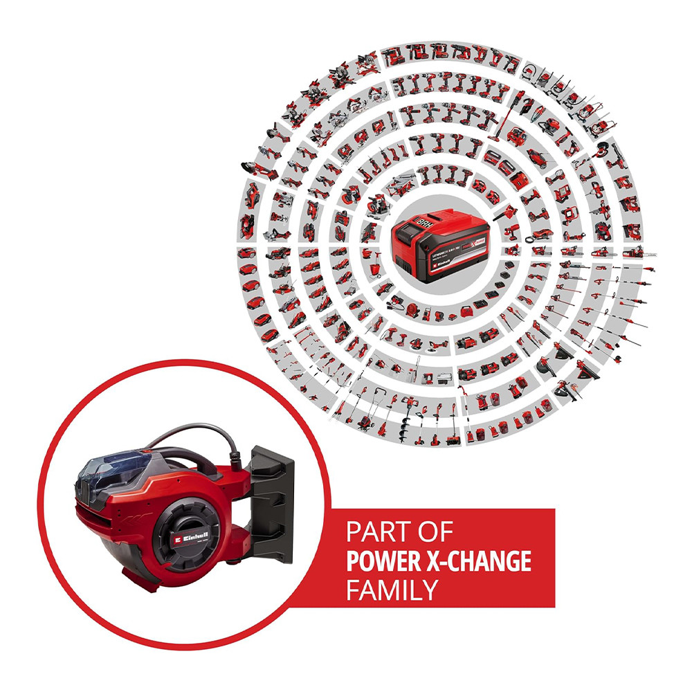 A 18 V Power X-Change akkumulátornak köszönhetően a nehéz kézi tömlőfeltekerés mostantól a múlté
