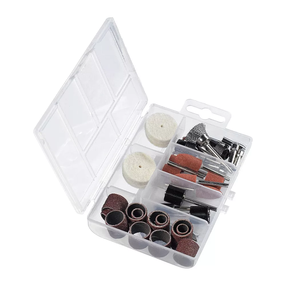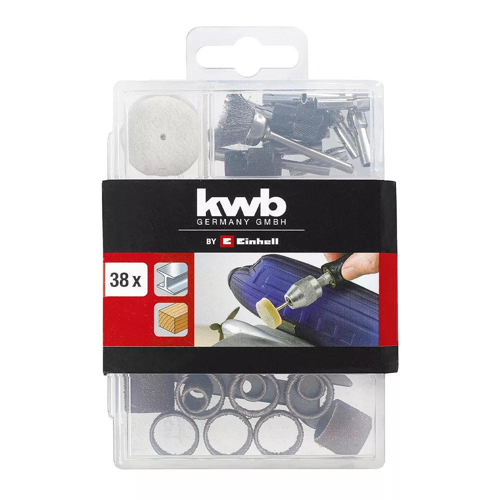 Az eredeti 38 darabos Einhell csiszoló- és polírozó tartozékkészlet praktikus kiegészítő dupla csiszolókhoz, valamint csiszoló- és gravírozó szerszámokhoz