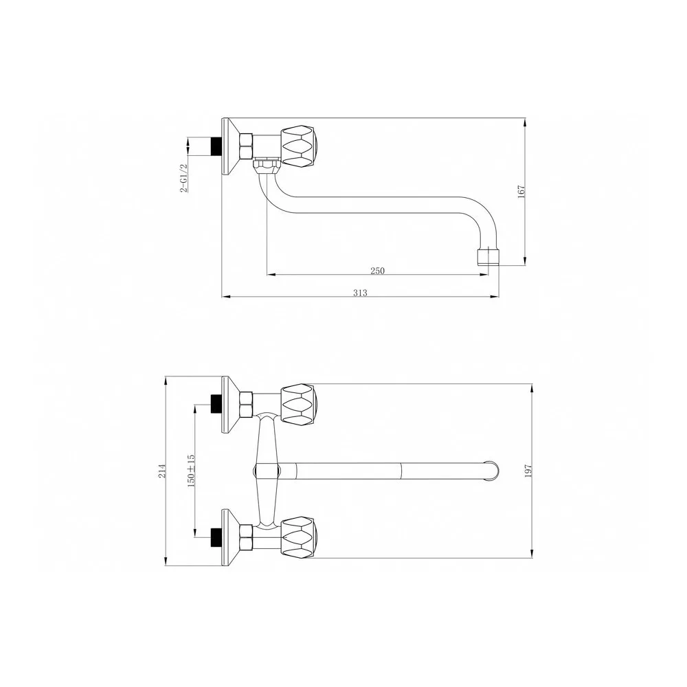 Extol Baletto mosogató-mosdó csaptelep, falra szerelhető, kerámia betét, króm, 25cm hosszú hajlít