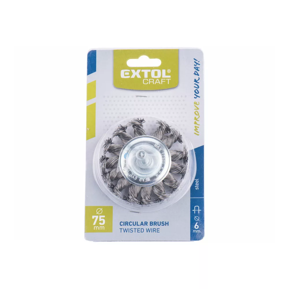 Extol Craft drótcsiszoló körkefe, 75mm, fúrógépbe fogható: 6mm csap, sodrott erős, hullámos szálú