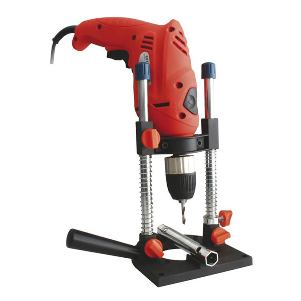 Egyszerű, sok módon beállítható fúró állványMerőlegesen és szögbe is állíthatóÁllítható a dőlés szöge ferde furatok készítéséhez, mindkét irányban 45 fokban állítható a fúrás mélysége isA tárgyasztalán kis prizma segíti a kerek munkadarabok fúrását43 mm-es nyakú fúrógépekhez használhatóKözpontosított csapolás fúrásaCső közepén való fúrásaBeállított ferde fúrásRögzített mélységű fúrás
