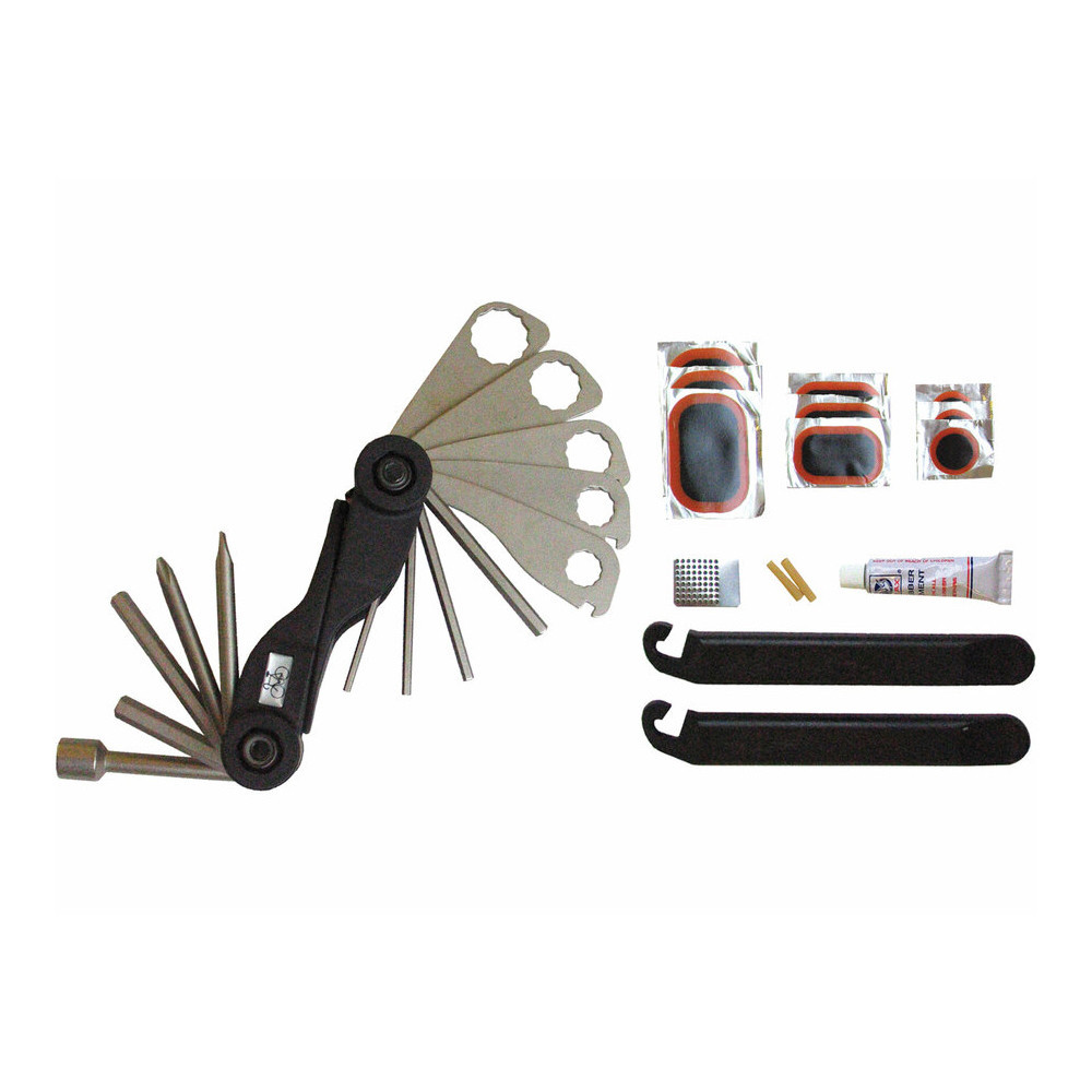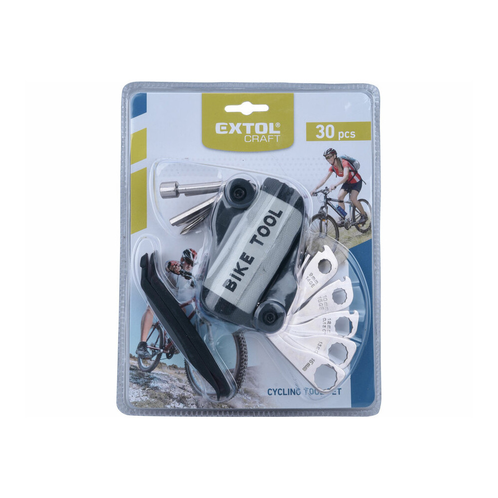 Extol Craft kerékpárjavító készlet 30db övrefűzhető, kulcskészlet,ragasztó+foltok, gumiszerelő