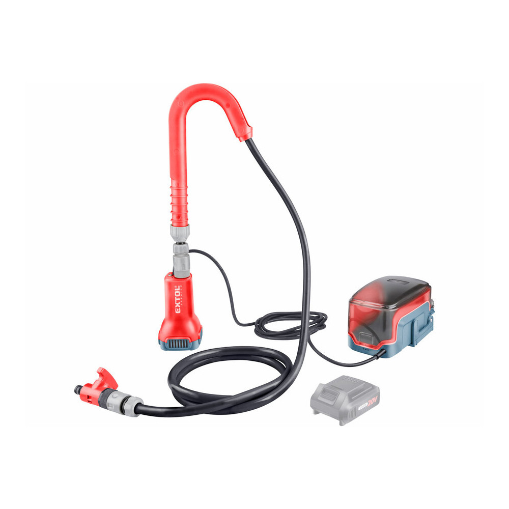 A SHARE 20 V akkus programba tartozó 8891931Extol® Premium hordószivattyút elsősorban hordó szélére akasztva lehet a hordóban található esővíz öntözéshez való szivattyúzásához használni.