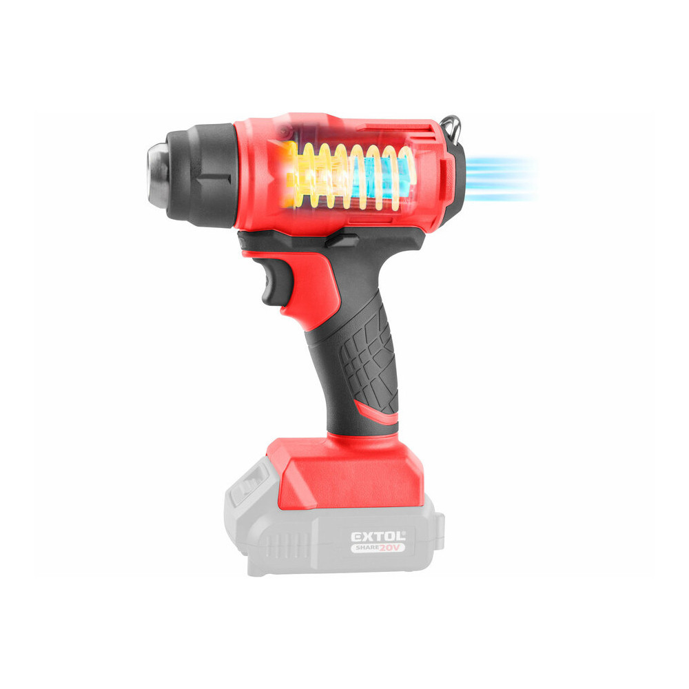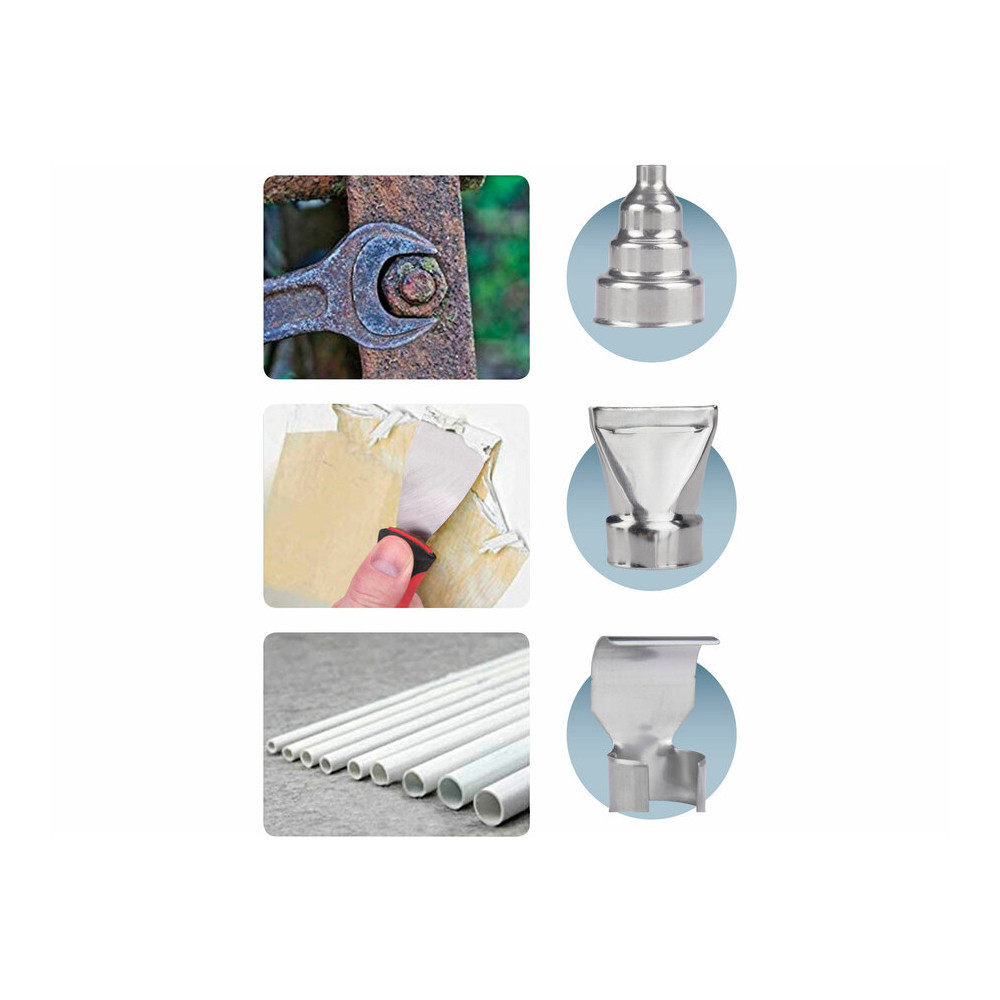 Az akár 550°C-os levegőhőmérsékletű, vezeték nélküli hőlégfúvó pisztoly műanyagok alakítására, zsugorítására és illesztésére, műanyag csövek hajlítására, ragasztott kötések fellazítására, fagyott csövek felolvasztására, járdaszakaszok közötti moha és gyom eltávolítására, grillparázs meggyújtására, szárításra stb. alkalmas.