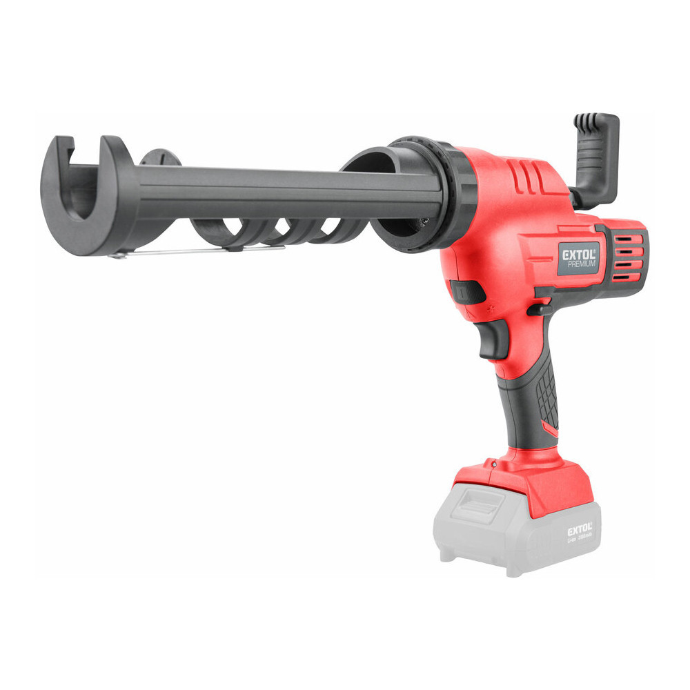 Az akkumulátorral működő extrudáló tálcás pisztoly szilikon, vegyi horgonyok stb. patronokból történő extrudálására szolgál .
