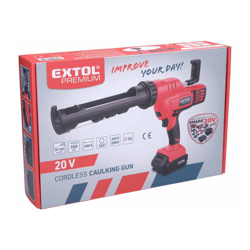 Extol Premium akkus kinyomópisztoly gép, Share20V, 20V, Li-ion, 1db akku, 1db töltő, 2000 mAh, 30