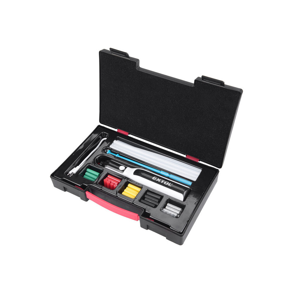 Extol Premium akkus melegragasztó toll, 4V 2,0Ah, tartozékkészlettel, szerszámdobozban