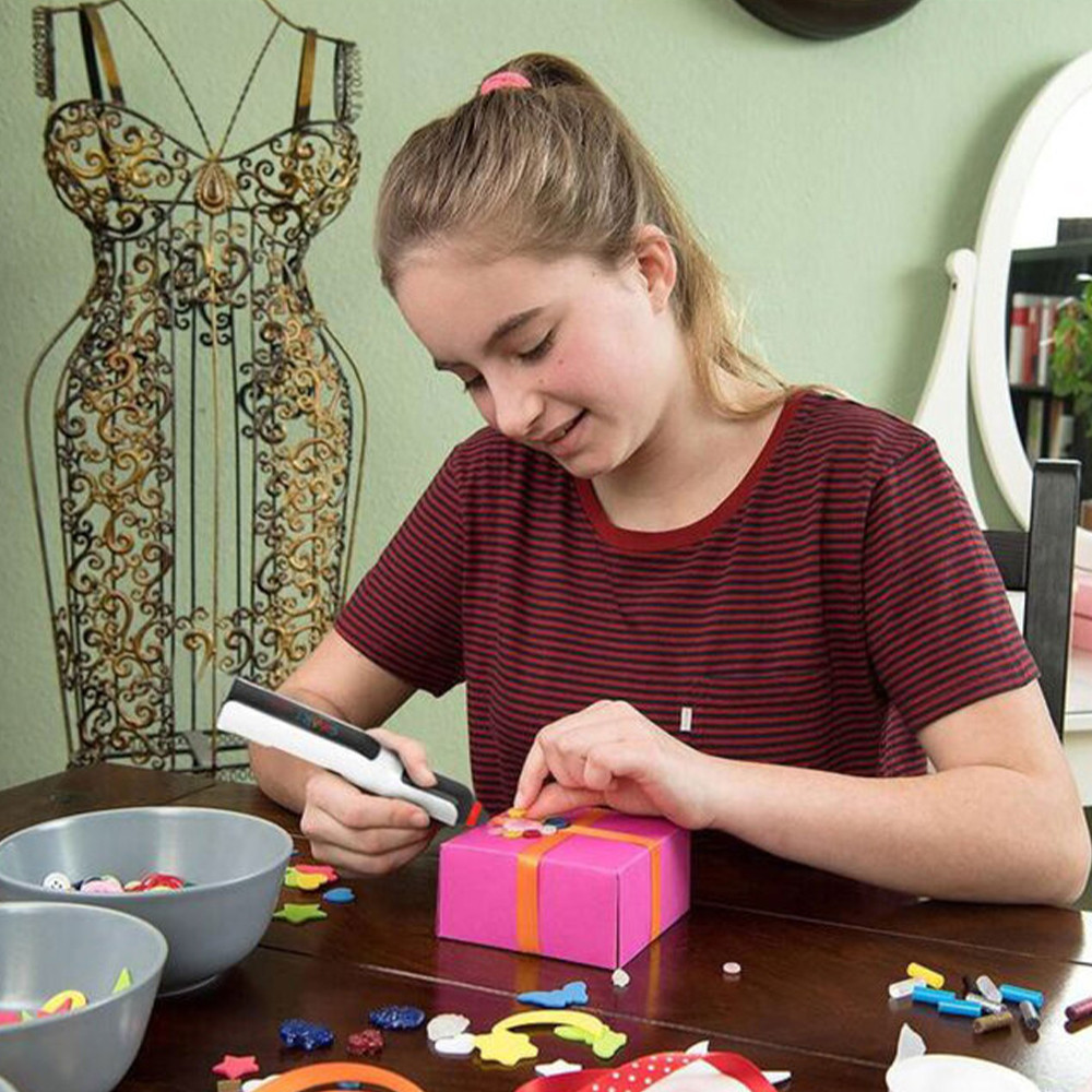 A készülékkel gyorsan lehet papírt, parafát, bőrt, textíliát, műanyagokat, kerámiát stb. ragasztani