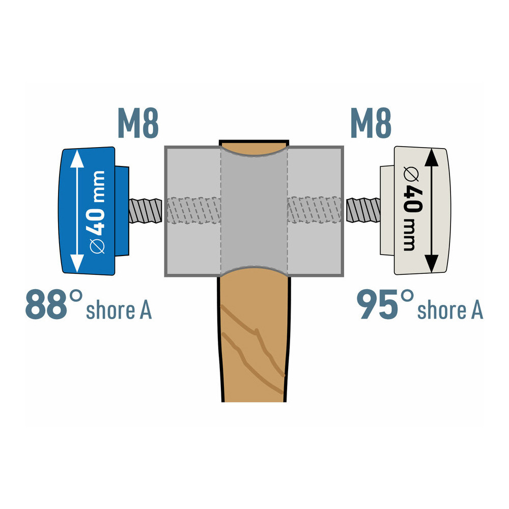 Kemény műanyag (88º shore A) (kék) /nagyon kemény műanyag (95º shore A) (fehér) fej
