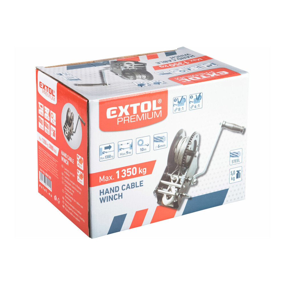 Extol Premium kábelcsörlő, kézi kurblival, max.1350kg