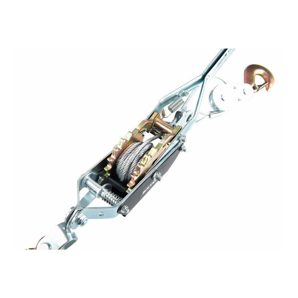 A kézi hajtású kötélcsörlő egy acél testből áll, amely dobot, fogaskerekeket és egy nagy, megfelelően kiválasztott áttételű racsnis mechanizmust tartalmaz