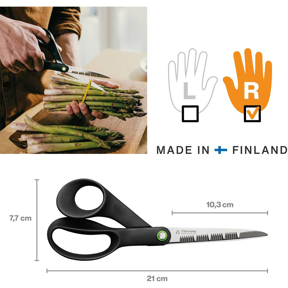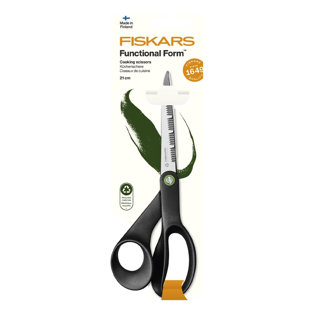Fiskars Functional Form ReNew konyhai olló újrahasznosított anyagokból készül (minimum 70 %)