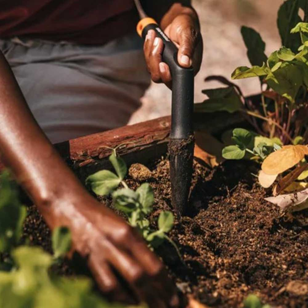A Fiskars Solid ültetőbot bemetszéseket és lyukakat készít a magok szükséges mélységben való elvetéséhez Az eszköz hegyén található mérőskála segítségével 150 mm-es mélységig ültethetünk, az egyedi L-alakú markolat pedig maximális nyomatékot és kényelmet biztosít Mint minden Fiskars Solid eszköz, ez az ültetőbot is könnyű, mégis tartós kialakítású FiberComp anyagból készült, amely az időjárási körülményeknek ellenáll és könnyen tisztítható A Fiskars Solid ültetőbot bemetszéseket és lyukakat hoz létre a magok megfelelő mélységben történő elültetéséhez Az eszköz hegyén található mérőskála 150 mm mélységig használható Az egyedi L-alakú markolat maximális nyomatékot és kényelmet biztosít Könnyű, mégis hihetetlenül erős FiberComp konstrukció ellenáll az időjárási körülményeknek és könnyen tisztítható