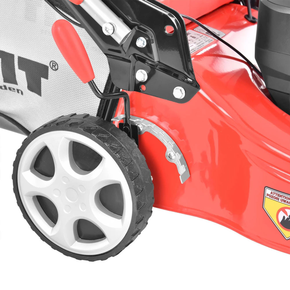 A fűnyíró munkaszélessége 41cm, a levágott füvet egy 50 literes textil gyűjtőkosárba gyűjti, mely telítettség jelzővel rendelkezik
