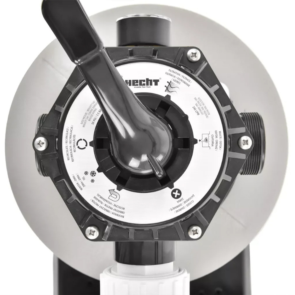 Az átfolyás a szilíciumalapú homokon keresztül történik, amely felfogja a finom szennyeződéseket és a medencébe csak a tiszta átszűrt víz kerül vissza