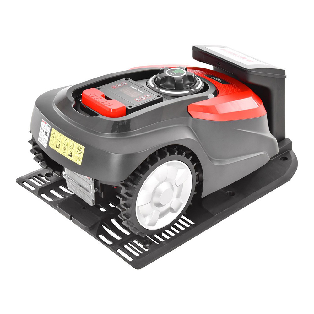 A fűnyírót töltőtalppal, töltőforrással, beépített 5,0 Ah akkumulátorral, 220 m-es kábellel a fűnyírási terület meghatározásához és az alap rögzítéséhez rögzítő csapokkal szállítjuk