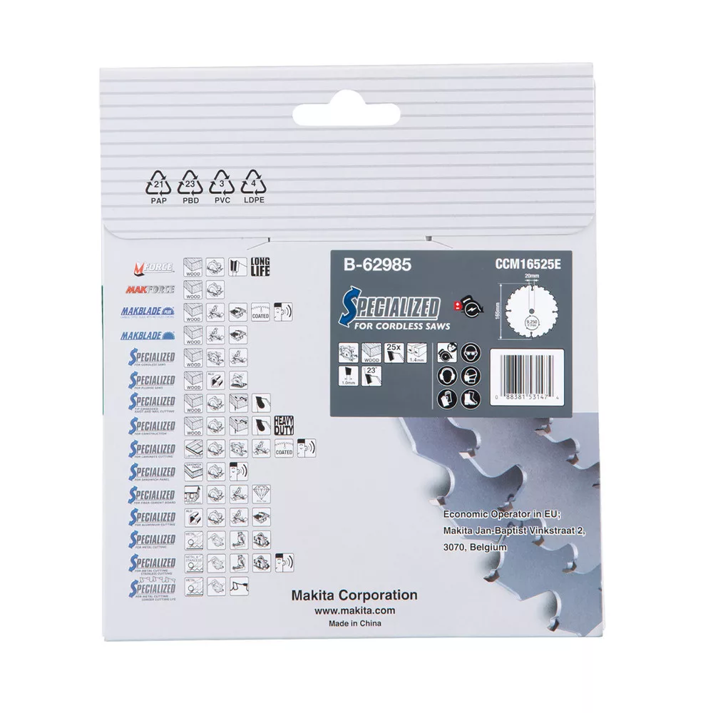 Makita EFFICUT körfűrészlap akkus géppel, fához 165x20x2,15mm 25 fog