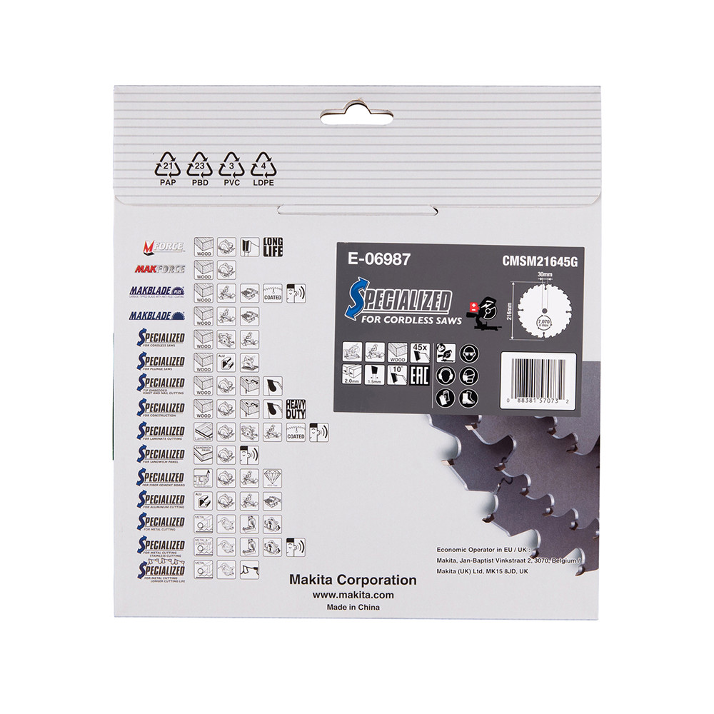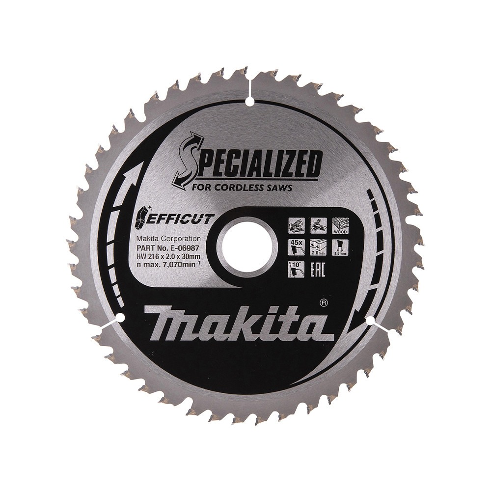 Makita EFFICUT körfűrészlap akkus géppel, fához 216x30x2mm 45 fog