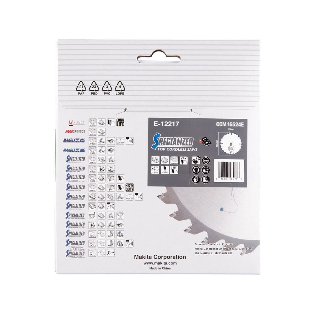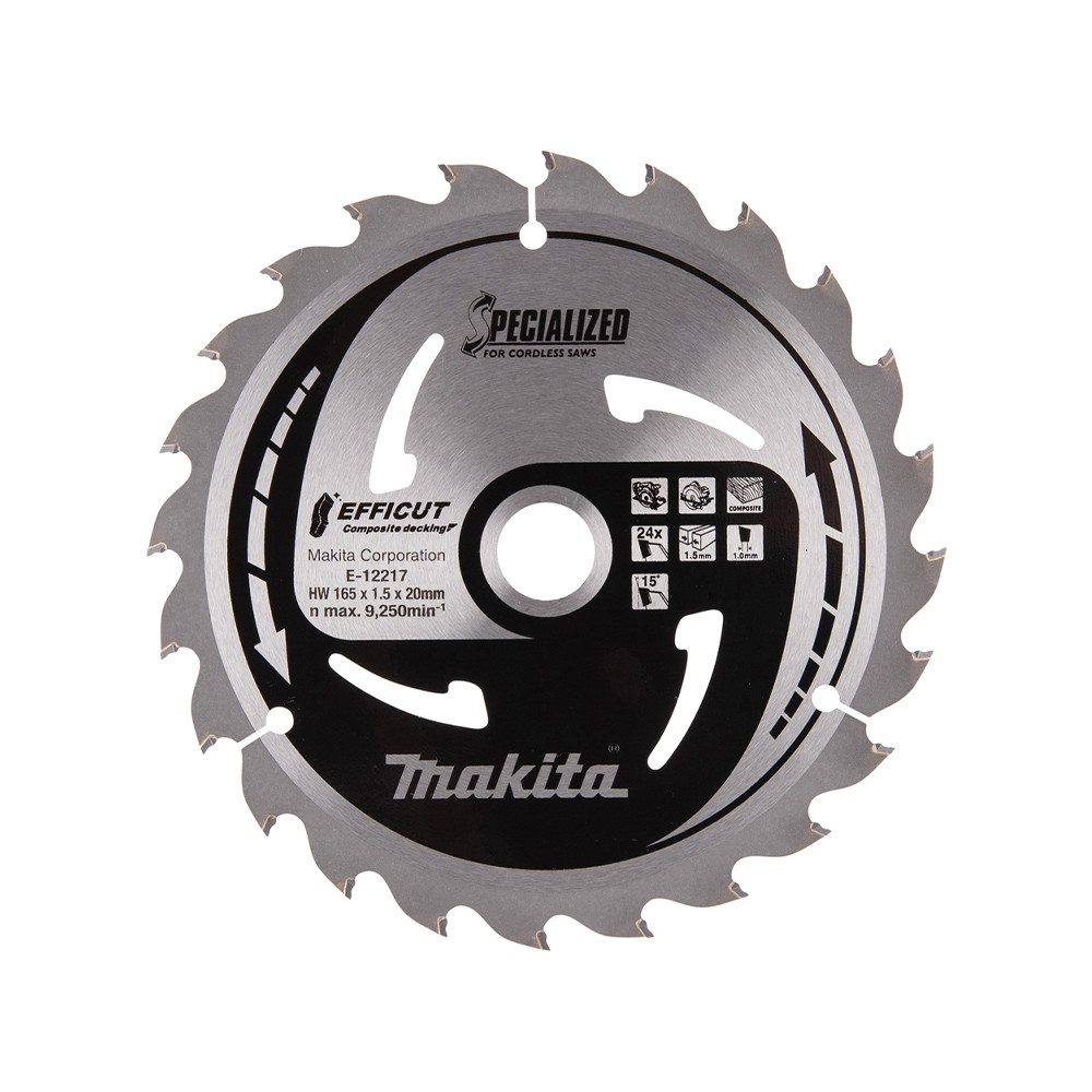 Makita EFFICUT körfűrészlap akkus géppel, kompozithoz 165x20x1,5mm 24 fog